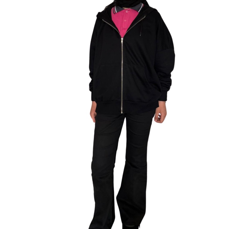 Kızlar için : Siyah alt eşofman, Pembe yakalı tshirt, Siyah fermuarlı / fermuarsız sweat