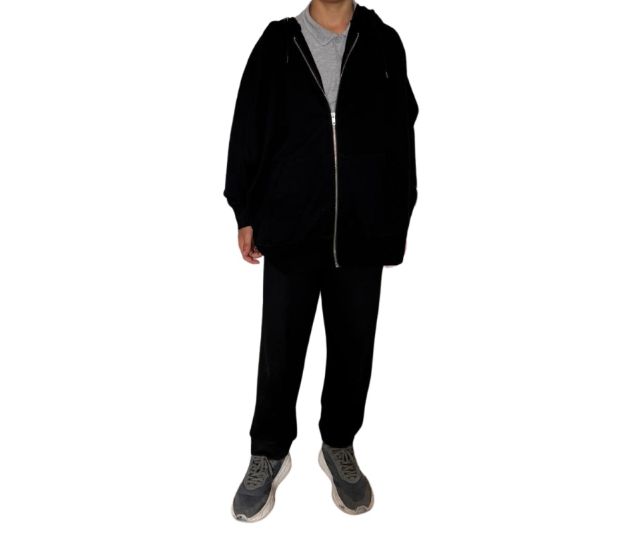 Erkekler için : Siyah alt eşofman, Gri yakalı tshirt, Siyah fermuarlı / fermuarsız sweat